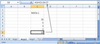 • Resta: Análogamente a la suma, pero con el signo - en vez del signo:. Y será: =RESTA(celda(s)-celda(s)).